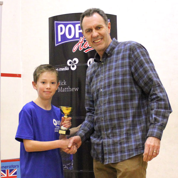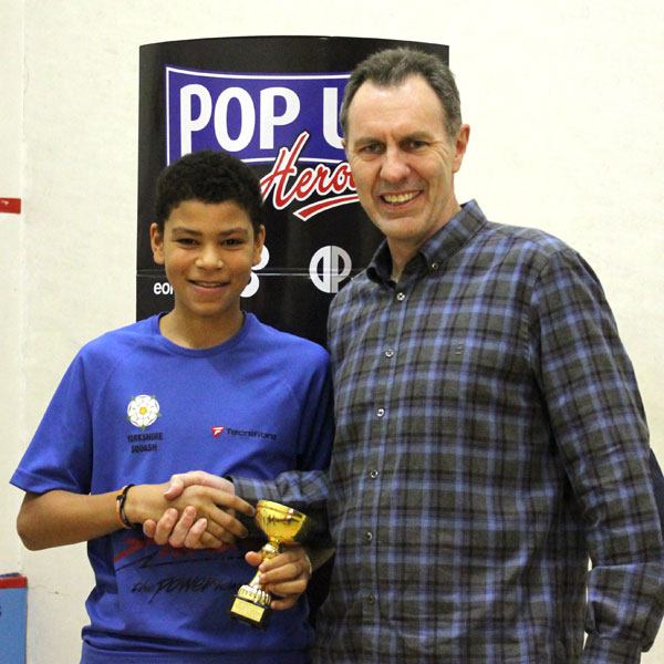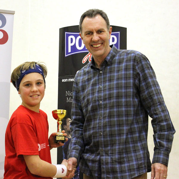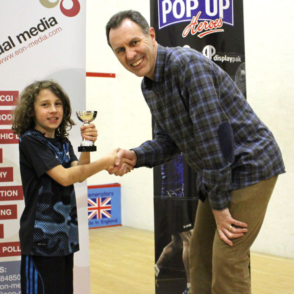 The event was finished with Sam Haycock taking on Nathan Kaiser in the Boys U19 final. The first 2 sets were a battle of attrition before Sam found the key to the trophy by playing some great winning squash in the 3rd set to take the title 3-0.